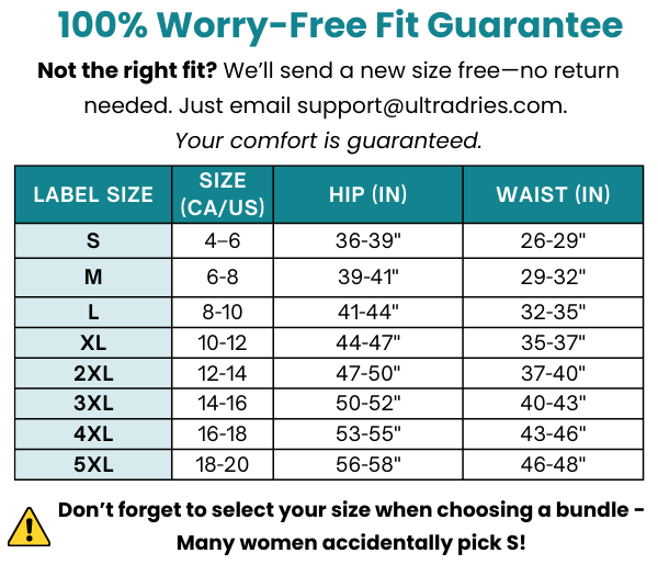 The information on this website is for general informational purposes only and is not intended to replace professional medical advice, diagnosis, or treatment. Ultradries underwear is designed to help manage bladder leaks but is not a medical device. If you have concerns about your bladder health or experience changes in your symptoms, please consult your healthcare professional.